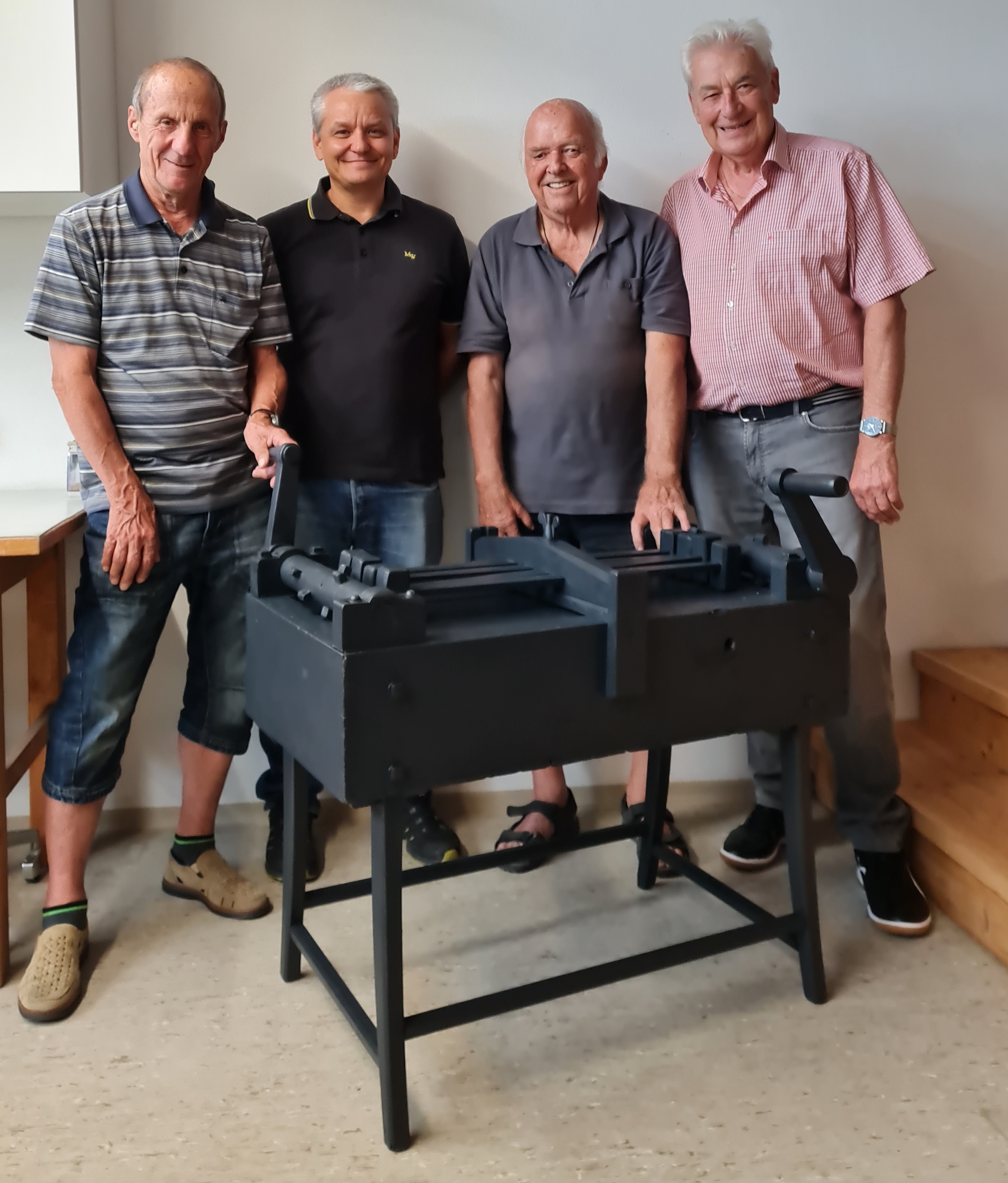 Die Pfarre St. Peter und Paul nennt eine etwa hundertjährige Rätsche ihr Eigen. Heinz Bösch, Markus Holzer, Hans Burkhart und Otmar Holzer haben sie nun restauriert.