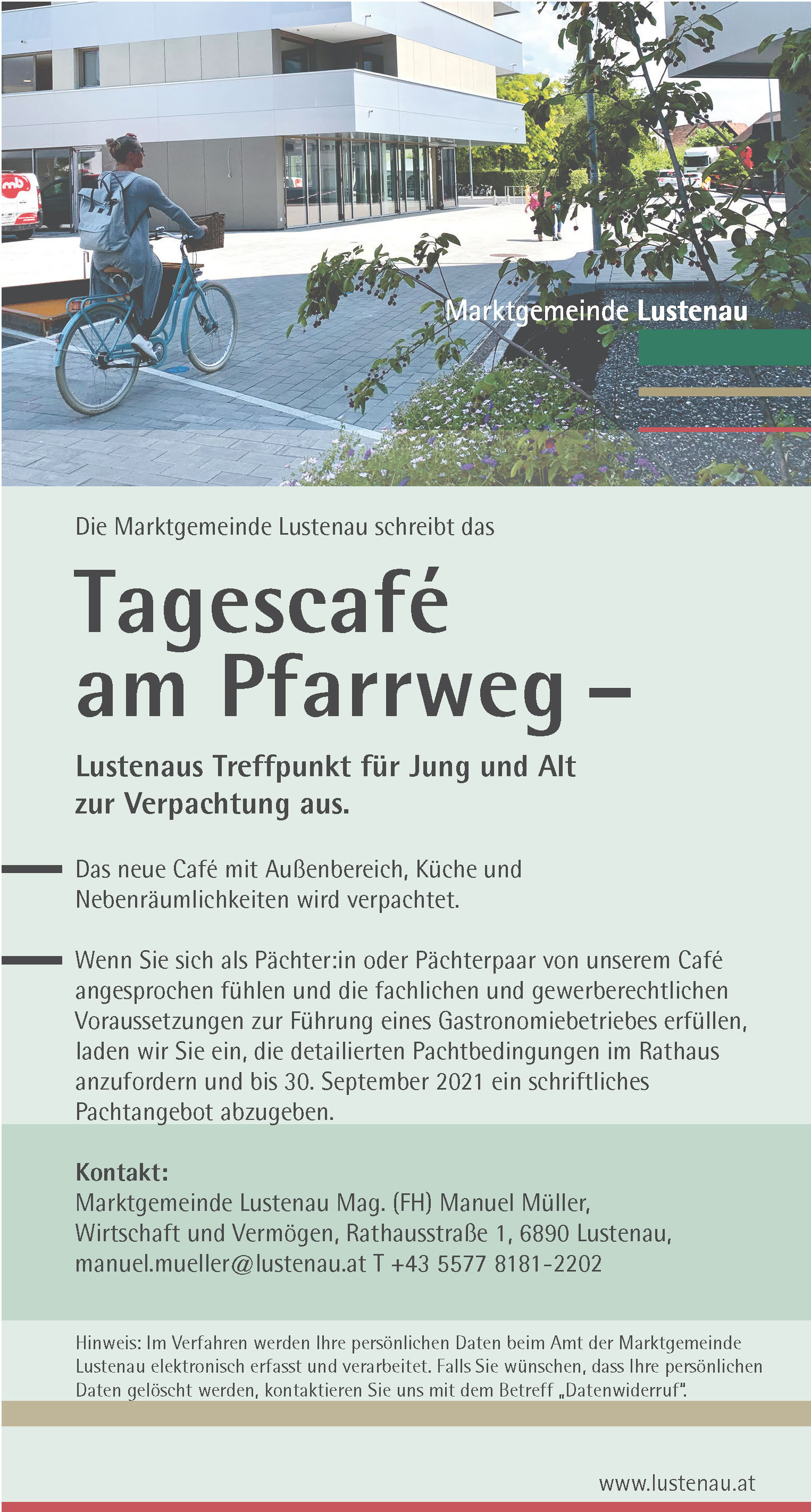 Ausschreibung - Tagescafé am Pfarrweg 27. August 2021