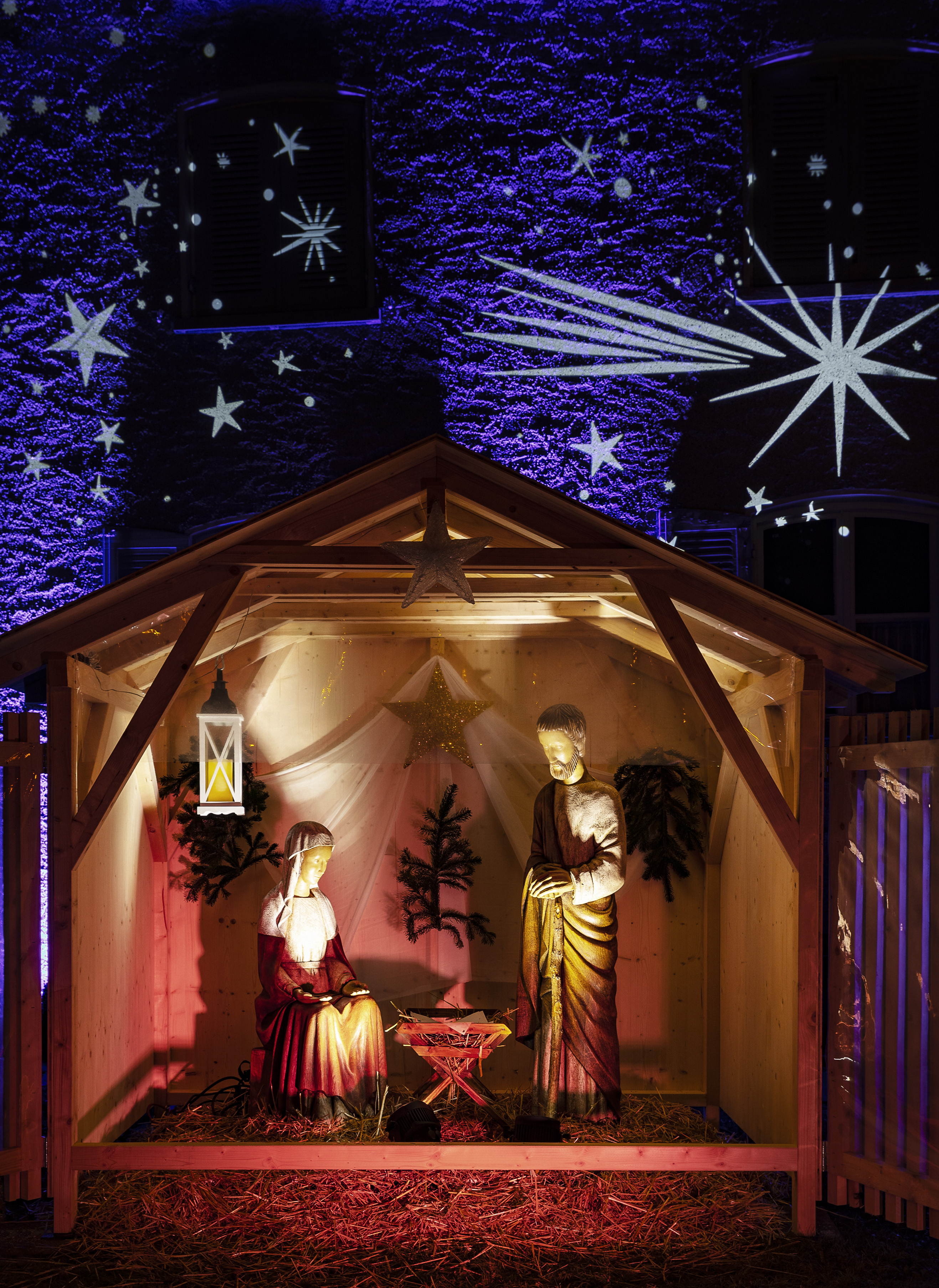 Die schöne Krippe in Pfarrer Thomas Sauters Garten erfreut die Menschen, die durchs Rheindorf spazieren und stimmt auf das Weihnachtsfest ein.