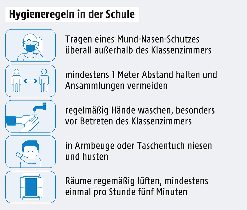 - Maskenpflicht für alle Personen am Weg in die Schule oder nach Hause, wenn sie öffentliche Verkehrsmittel benutzen